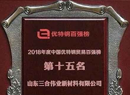 2018年度中國優特鋼貿易百強榜 第十五名